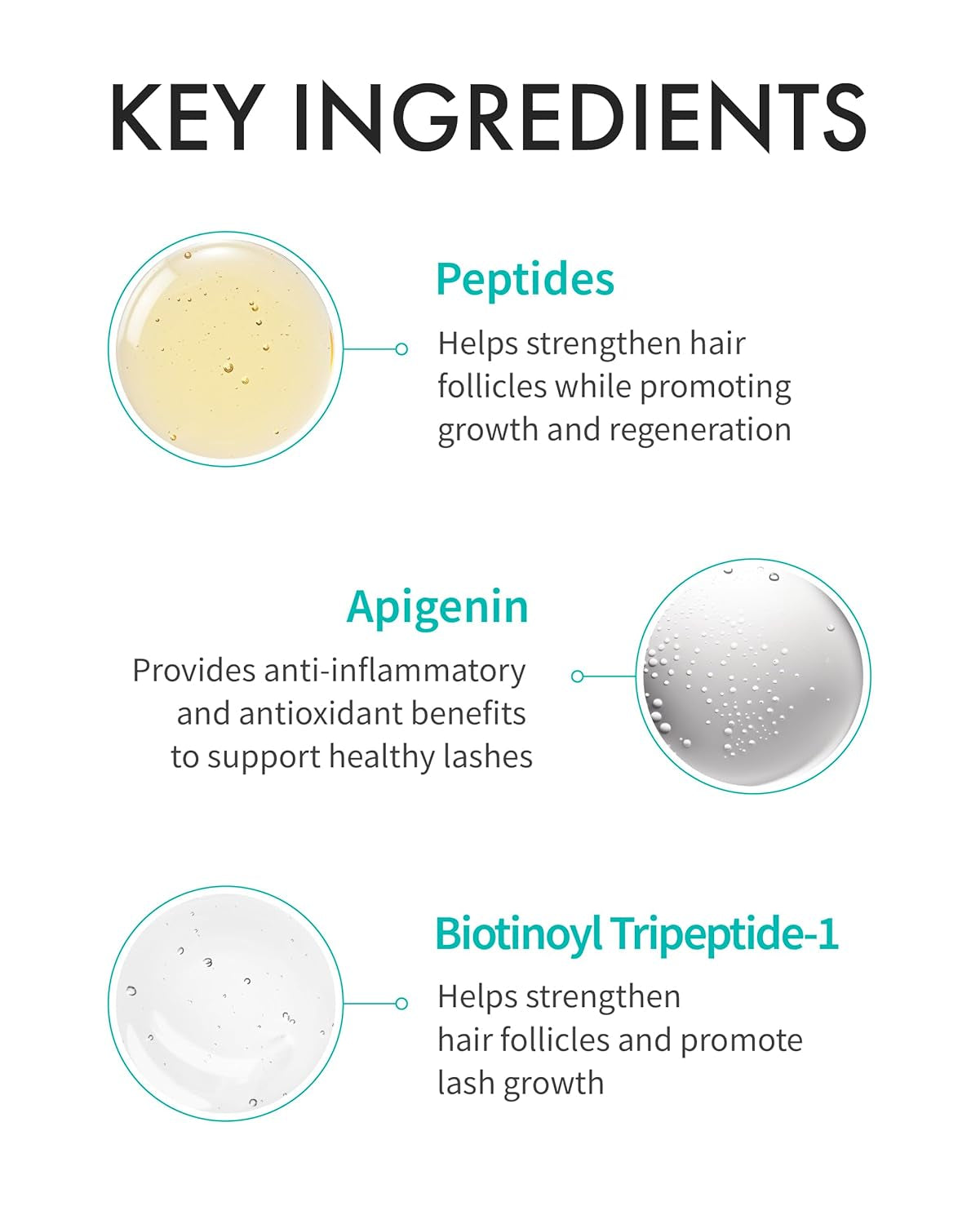 - POWERFUL PEPTIDES: The combination of Copper Tripeptide-1 and Biotinoyl Tripeptide-1 in this formula strengthens hair follicles, stimulates new growth, and increases lash density. These peptides work together to enhance the overall thickness and volume of your lashes, making them more robust and less prone to falling out.