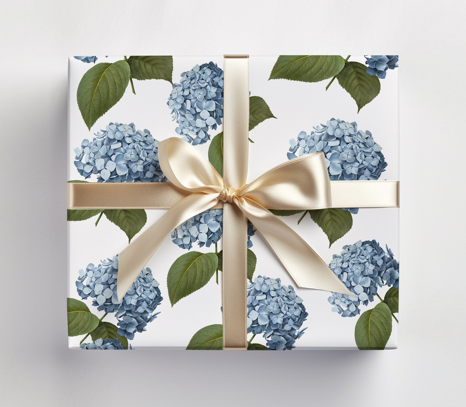 Add a Touch of Elegance to Your Gifts with Blue Hydrangea Wrapping Paper!