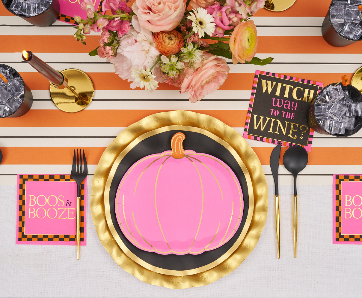 These die cut pumpkin salad plates come with both orange and pink pumpkins, adorned with stunning metallic gold accents. These fun and festive plates are both durable and disposable, allowing you to skip the dirty dishes, without sacrificing quality and style.