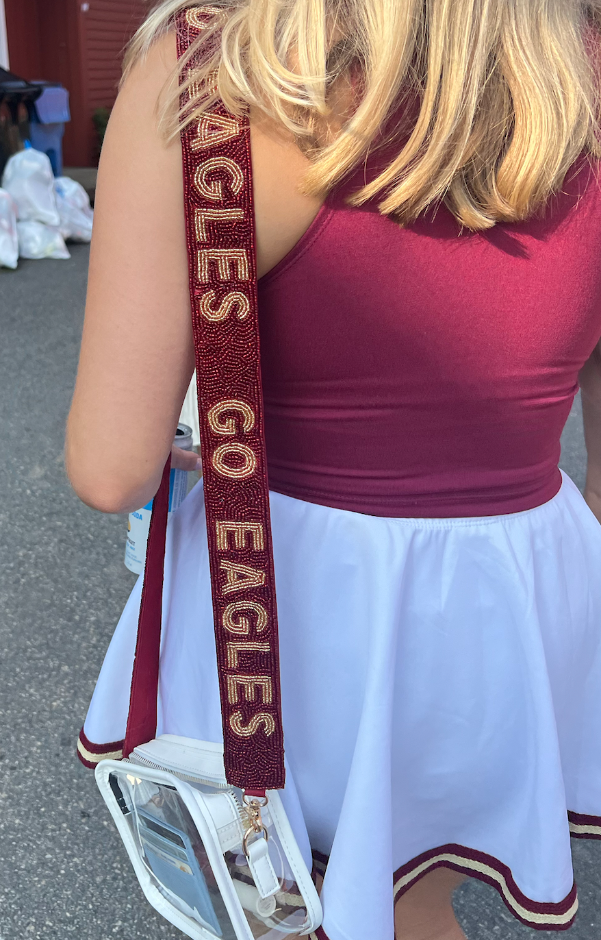 Introducing our handmade beaded purse strap, perfect for showing off your love for the Boston College and their iconic rallying cry, "Go Eagles!" Perfect with a clear bag for game day.