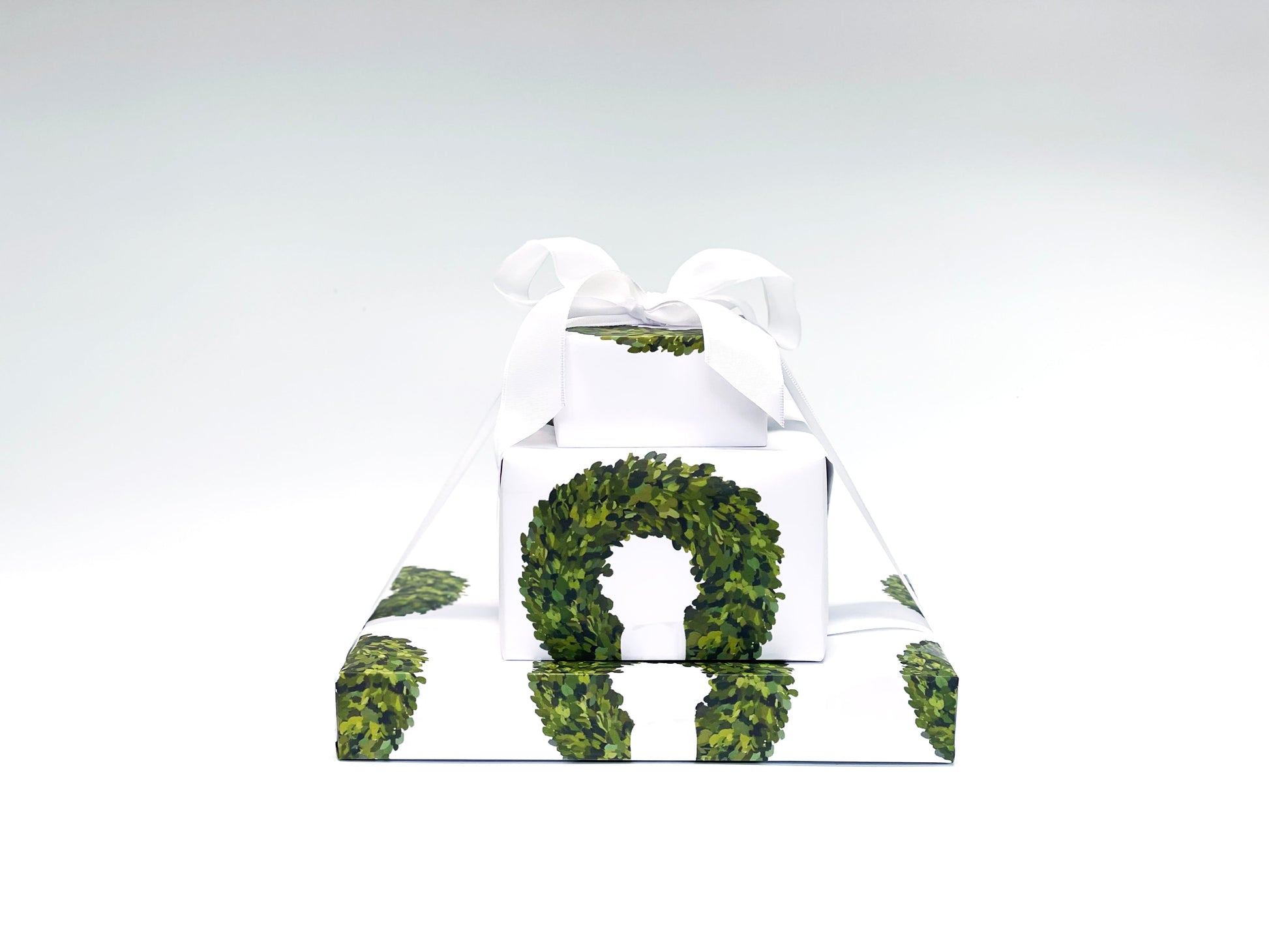 Celebrate every occasion in style with the timeless beauty of our "Timeless Elegance: Boxwood Wreath Printed Gift Wrap Paper." Whether it's a special holiday like Christmas or an everyday moment of sharing, your thoughtful gesture will be beautifully wrapped and ready to delight your loved ones. Order your gift wrap wrapping paper today and elevate your gift-giving experience to a whole new level!