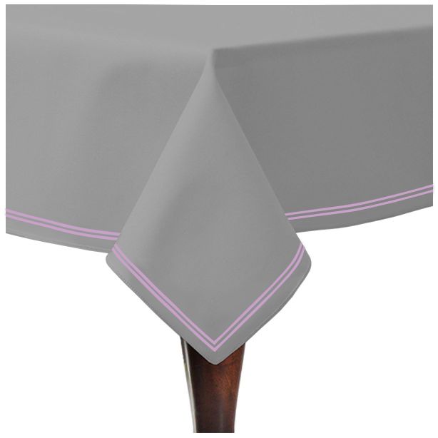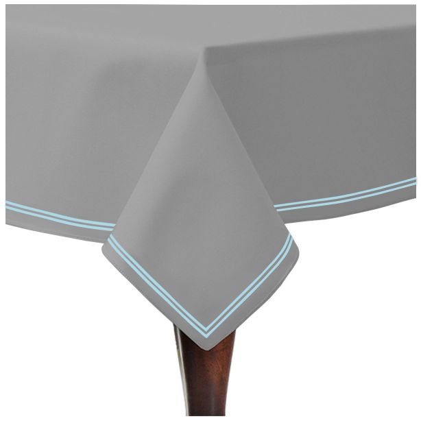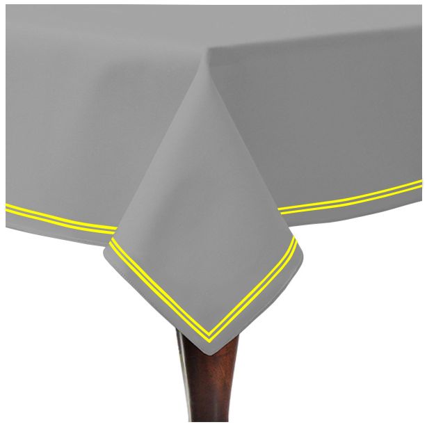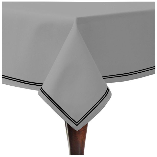 Double Embroidery Border Sateen Cotton Solid Table Cloth - Light Grey