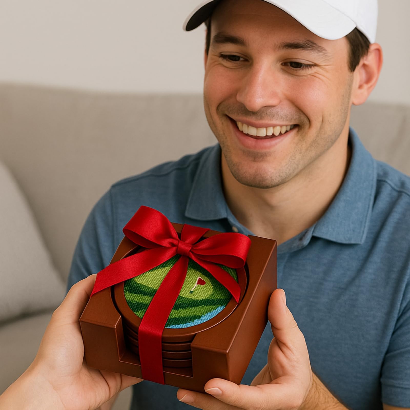 Bring your love for the game to the table with the Khen Golf Coasters—a playful yet practical set designed for golf enthusiasts. This set of four coasters features a creative golf-themed design that adds personality to any space, whether you're relaxing at home, entertaining guests, or outfitting your office. Made to protect surfaces from condensation and spills, each coaster combines style with everyday function. Perfect for gifting or keeping for yourself, this set is a hole-in-one for anyone who appreciates a clever take on classic drinkware accessories.