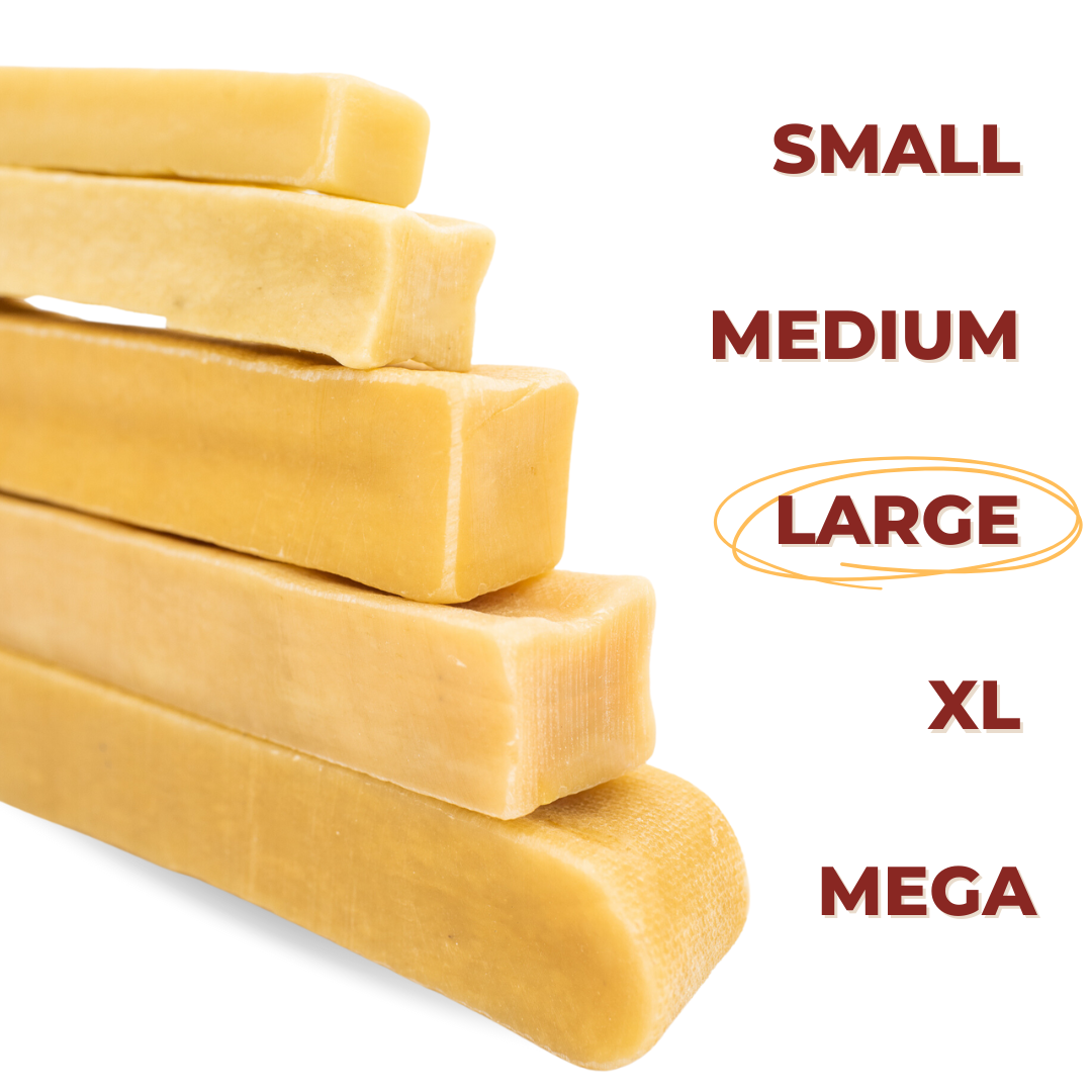 We know dogs can come in all sizes at Bully Bunches, and these large yak chews are best suited for medium-sized dogs. Our large yak chews are made with the same quality that your pets expect from amazing Bully Bunches treats. These large yak chews for dogs are ethically sourced and oven-baked to be healthier alternatives to rawhide. Our team of dog lovers hand-sort and inspects every chew to ensure your pup gets a dependable product with high consistency and unmatched value.