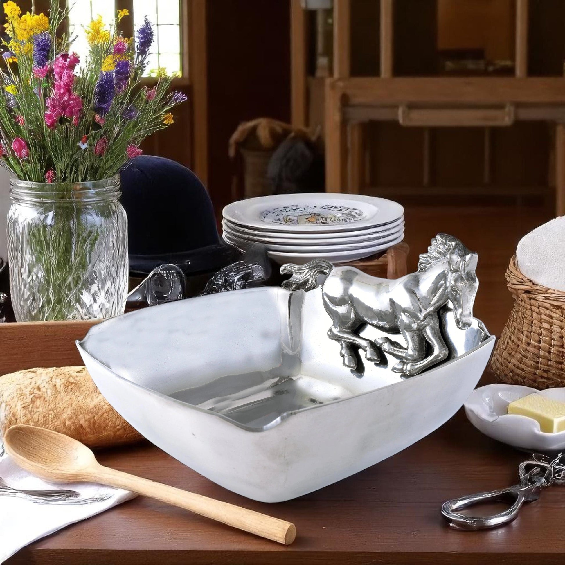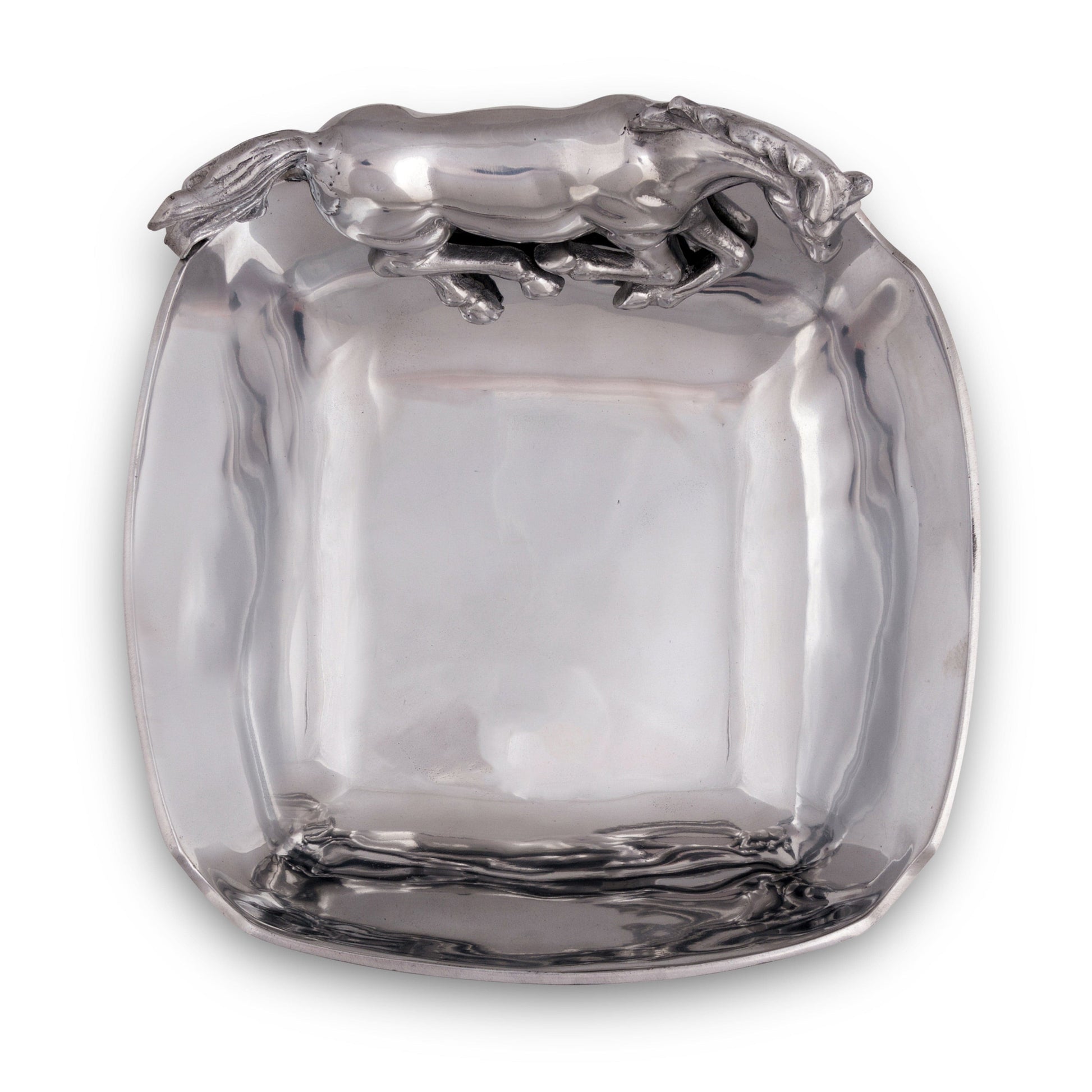 Proudly presenting, Arthur Court's Equestrian Collection Horse 11 Bowl, a versatile entertainer's delight destined to add style and charm to any occasion. Crafted from high-quality aluminum, this horse-themed bowl is the perfect blend of elegant craftsmanship and functional design. Its sophisticated aesthetic makes it the ideal addition to your home decor, radiating a stylish equestrian vibe. Not only does it rank high on style quotient, but it's also eminently practical - measuring 11 inches, it's spacious enough to use for serving at parties or simply as a stunning centerpiece. This treasure from Arthur Court's Equestrian collection also makes an ideal wedding gift for horse lovers, encapsulating their passion beautifully in a piece that is as pragmatic as it is enchanting.