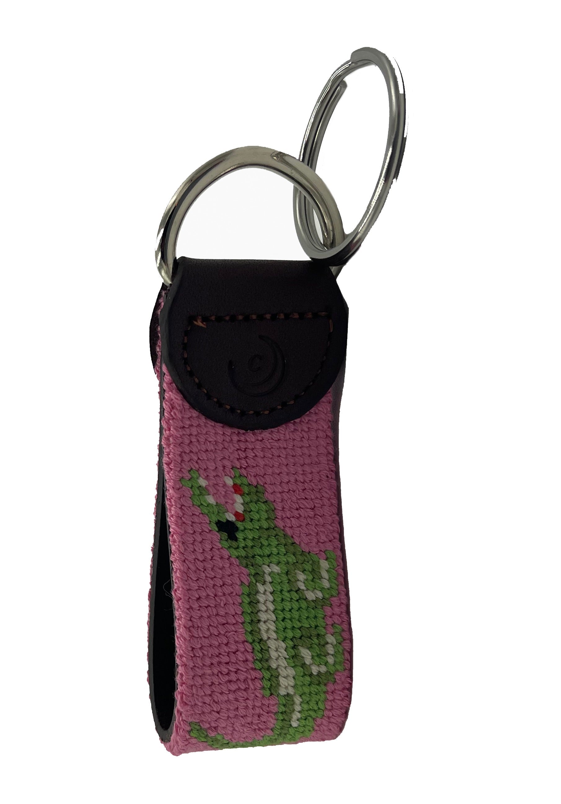 Key Fob - Pink Alligator Hand-stitched Needlepoint