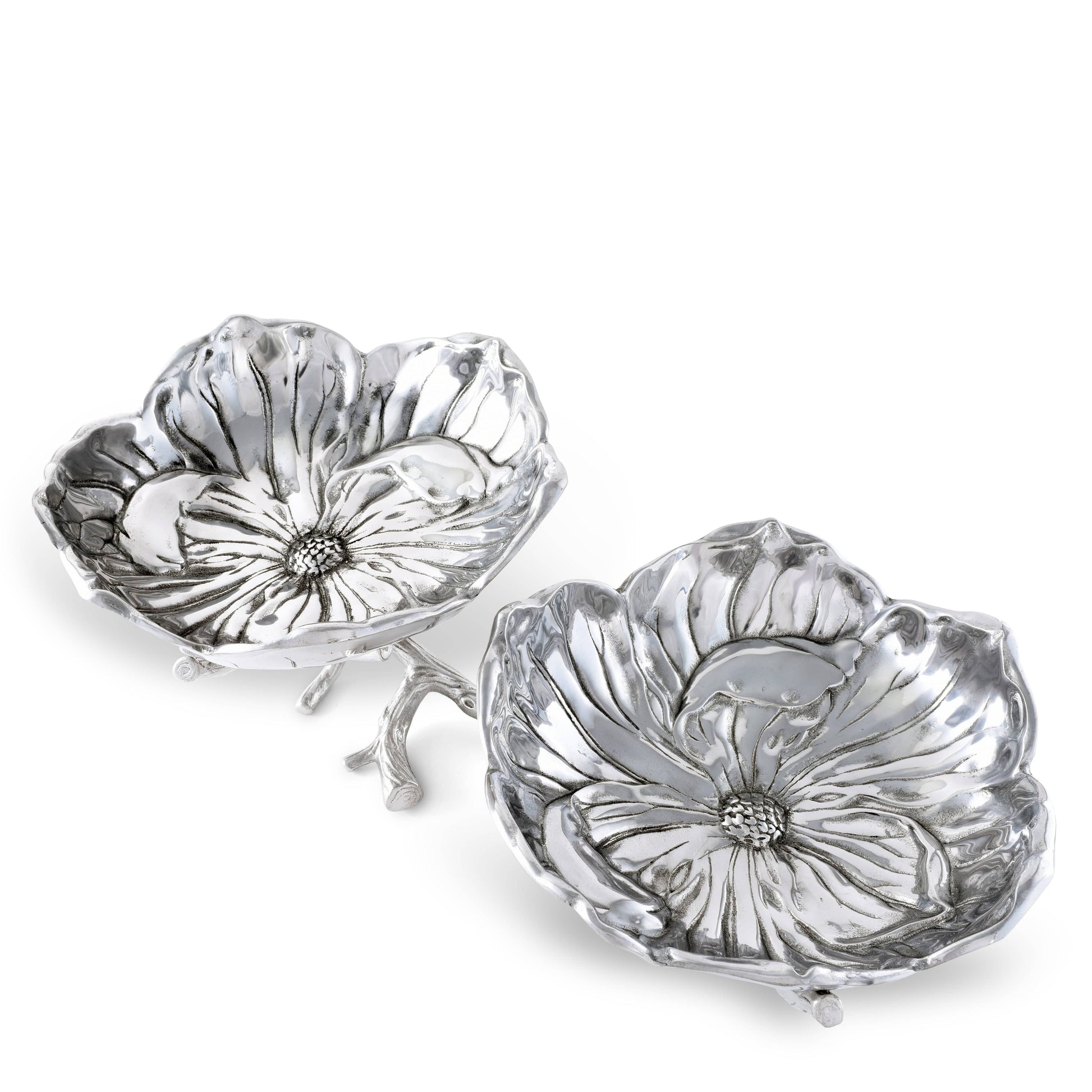 Capture the elegant essence of nature with the Arthur Court Designs Magnolia Dual Serving Bowl - Ideal for Fruit Display. Each feature is meticulously crafted to embody the magnolia's charm and elegance. Its versatile design not only makes it suitable for displaying fruits but also makes the Arthur Court Designs Magnolia 2 Bowl a standout piece for bridal shower gifts. With high-quality aluminum for sturdiness and polished for a radiant look, this bowl is a testament to Arthur Court's commitment to quality. It’s more than a bowl; it’s a classy and timeless accessory for your home, enhancing your overall decor while being highly practical.