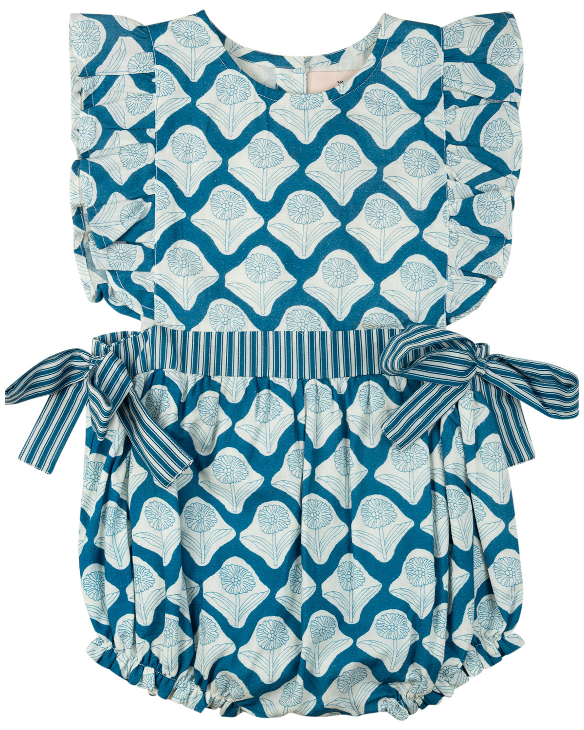 The Navy Block Print Bubble blends timeless charm with modern flair. Featuring a classic navy hue adorned with intricate block prints, this bubble romper offers both comfort and style. Perfect for playdates and special occasions, it ensures your little one shines with effortless elegance wherever they go.