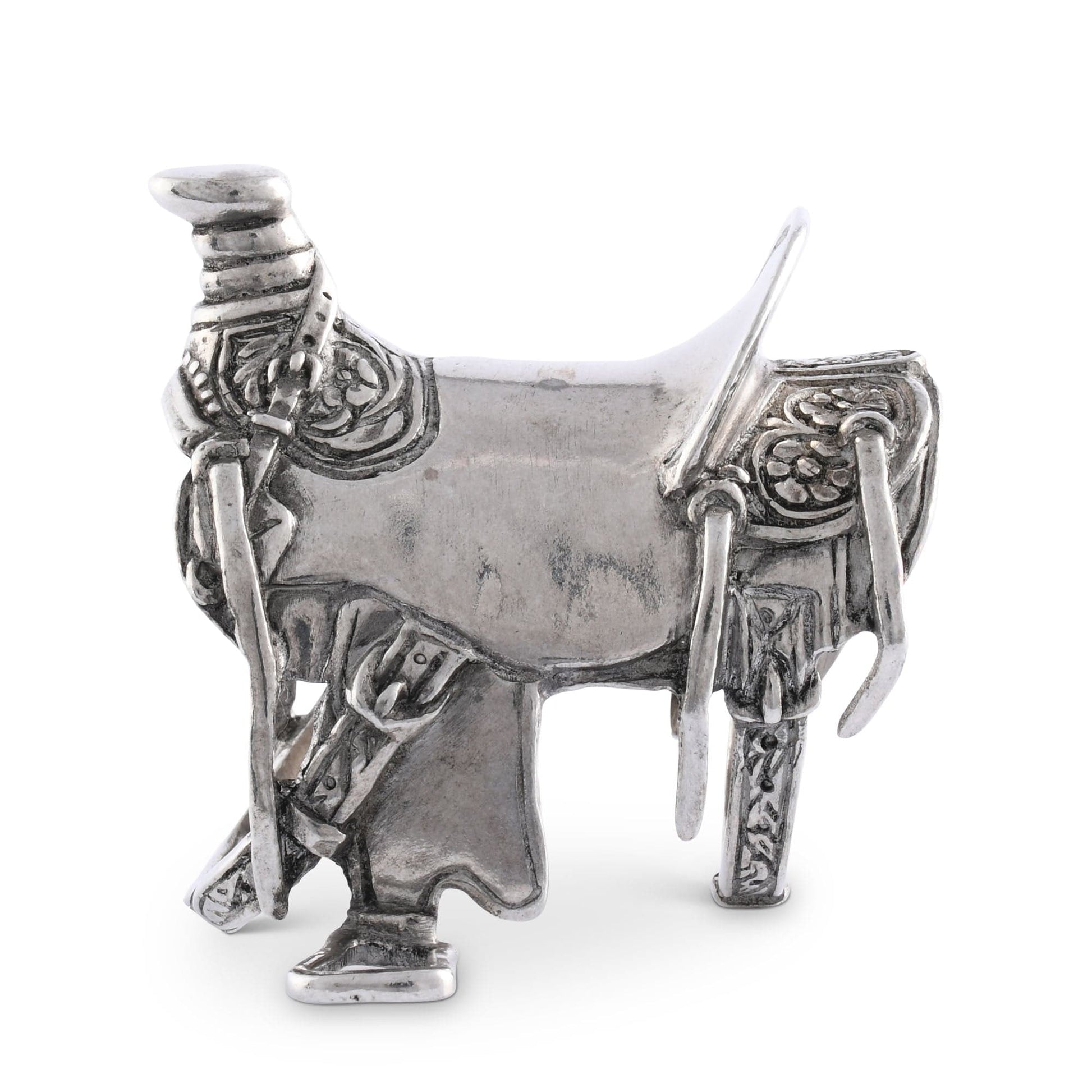 Home in on the spirit of the Western Frontier with Vagabond House's Pewter Cowboy Saddle Napkin Ring. The generous size of 2.75"L x 2.5"H, showcases the hand-finished pewter's astonishingly accurate detailing, from tooled leather to saddle buckles, making it the perfect accessory for enthusiasts of noble metal table accents. The character and craftsmanship of this unique piece, inspired by the wild west, makes it an exceptional gift for a thematic western table setup.
