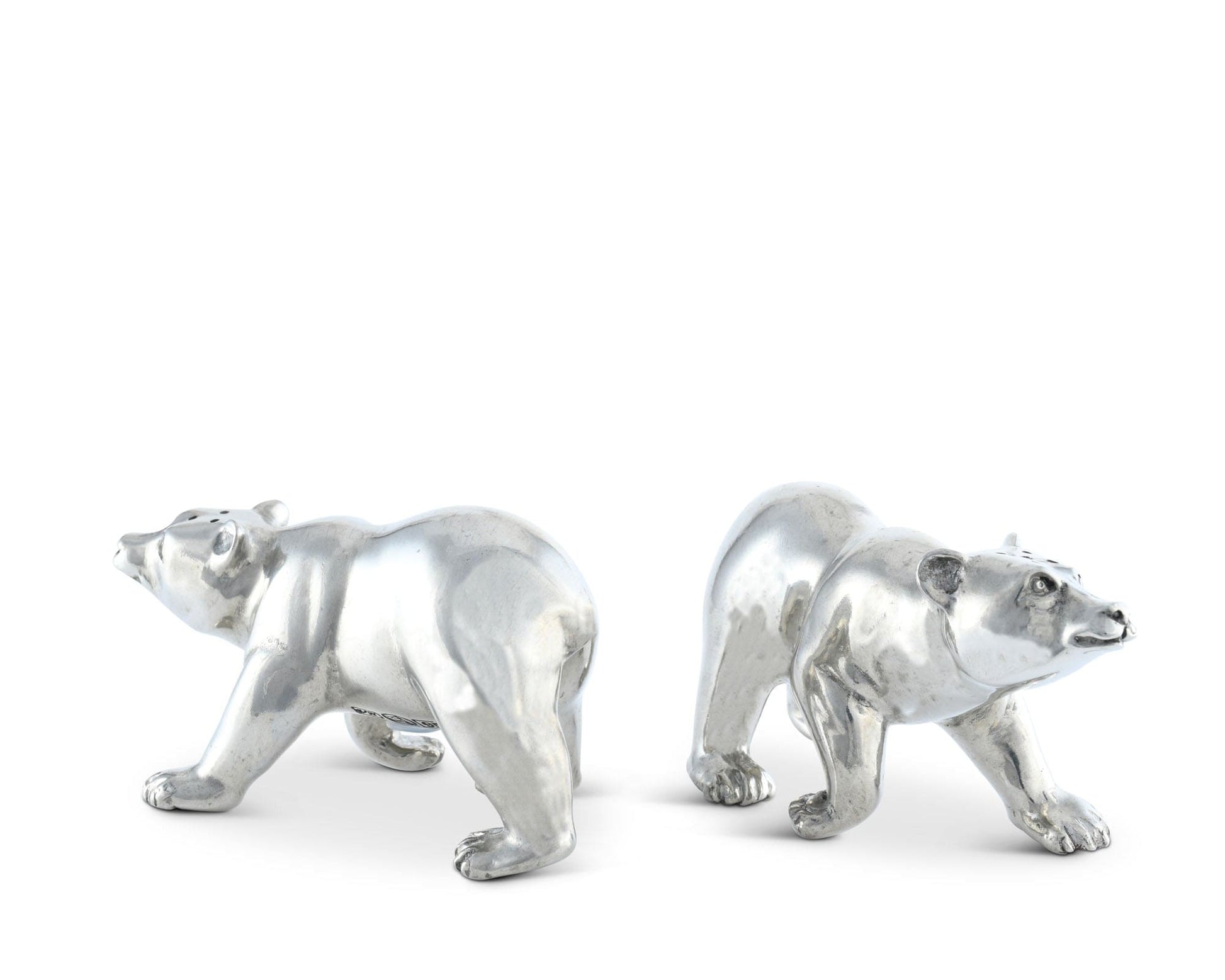 Infuse your tablescape with the unique charm of our Pewter Polar Bear Salt and Pepper Set, part of Vagabond House's Woodland Creatures collection. These iconic Arctic creatures, meticulously designed with an utmost commitment to craftsmanship, act as a perfect conversation starter at any gathering. Their sculpted 3"T size is perfect for easy passing and serving, making this set an absolute must-have for anyone with a love for wildlife and flair for entertaining.