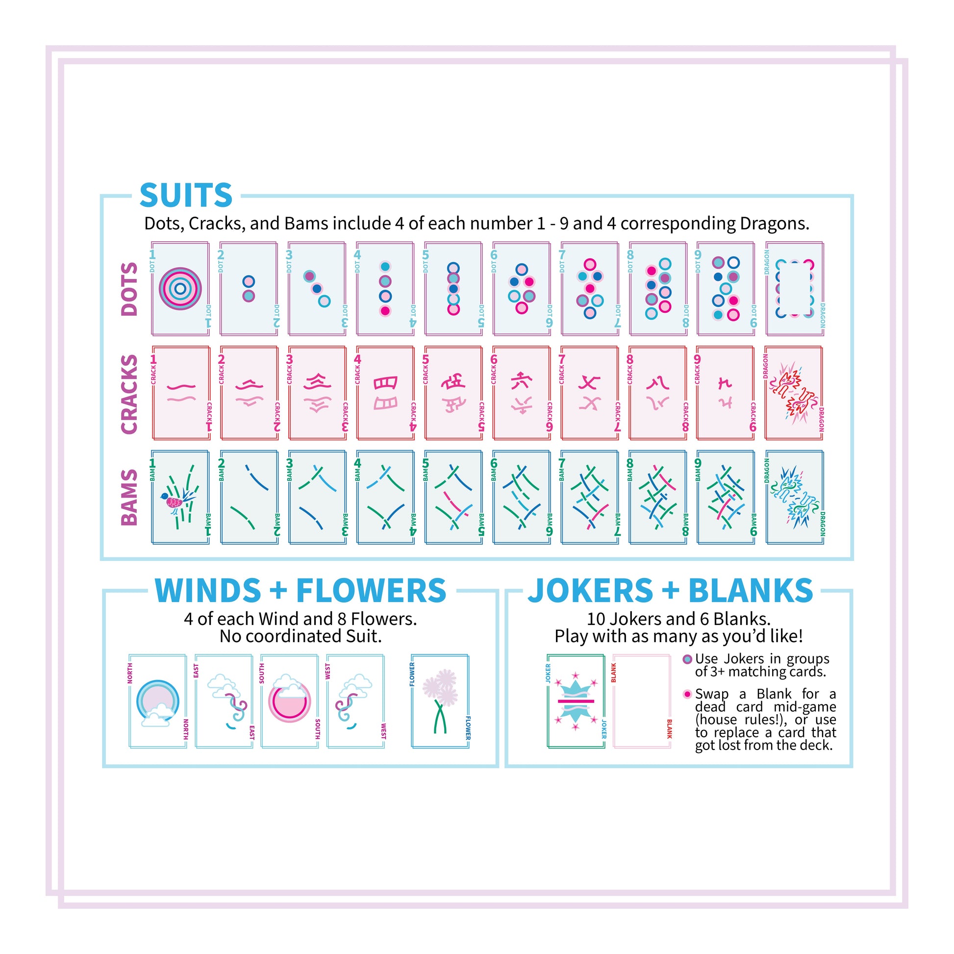 Box includes 160 American Mahjong playing cards as well as Playing Instructions (both Traditional and Quick Play formats!) to get you out the door and ready to play ASAP!