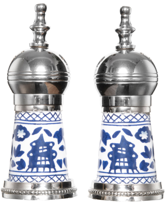 Silver and Blue Pagoda Salt and Pepper Shaker