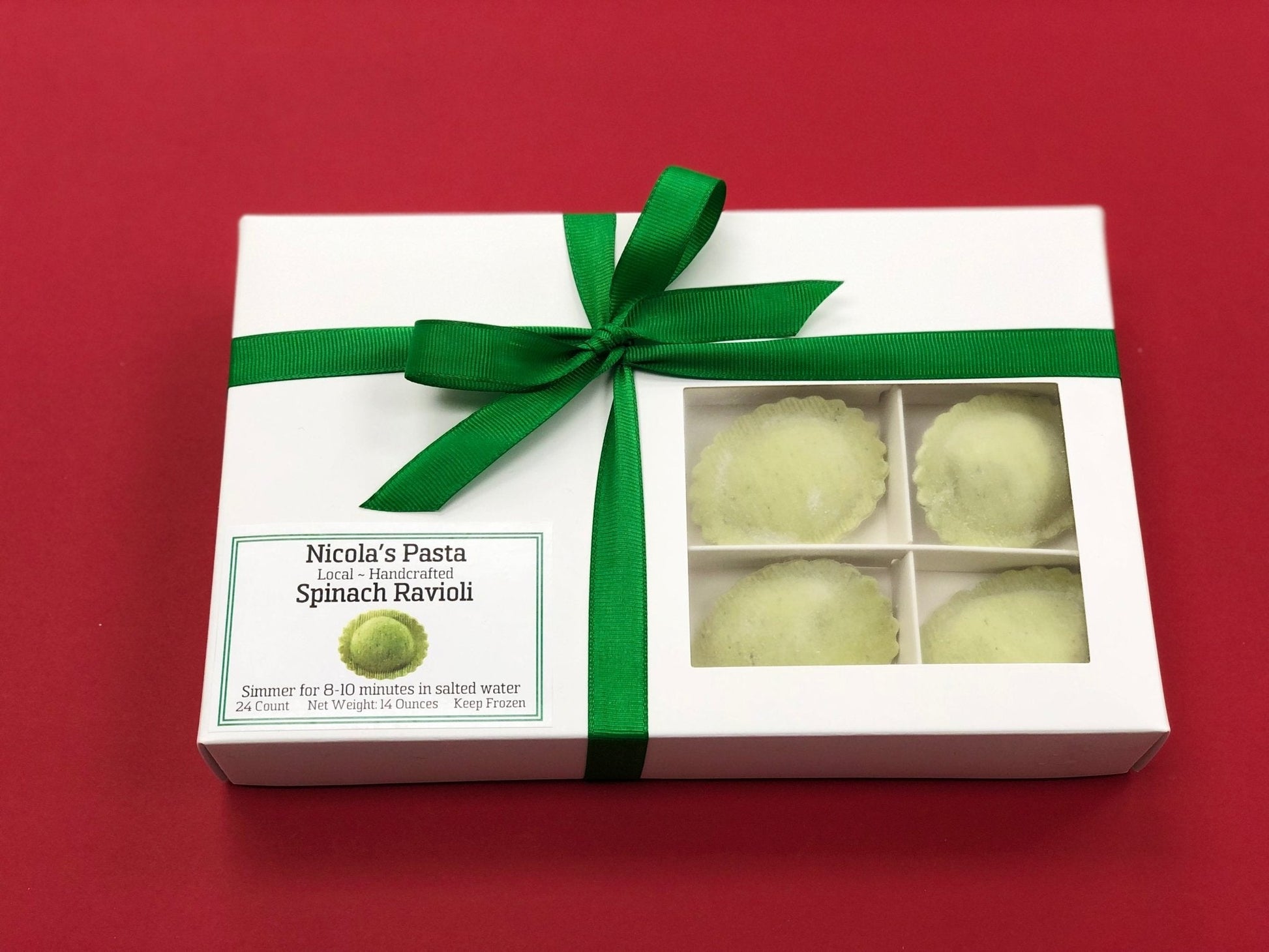 ##0##Spinach Ravioli is one ravioli that you will savor more than once. It’s perfect for those times when you are craving a different flavor. Wondering why? Because we only use freshly sourced organic ingredients to make this ravioli. The spinach used is sourced directly from the local farmer, and the semolina flour used is unbleached and is imported directly from Italy. Spinach ravioli is filled with sautéed spinach and fresh ricotta. Indulge in a rich taste with this gourmet-inspired ravioli made in an authentic Italian style. You can serve it for dinner or as a starter preparation.
