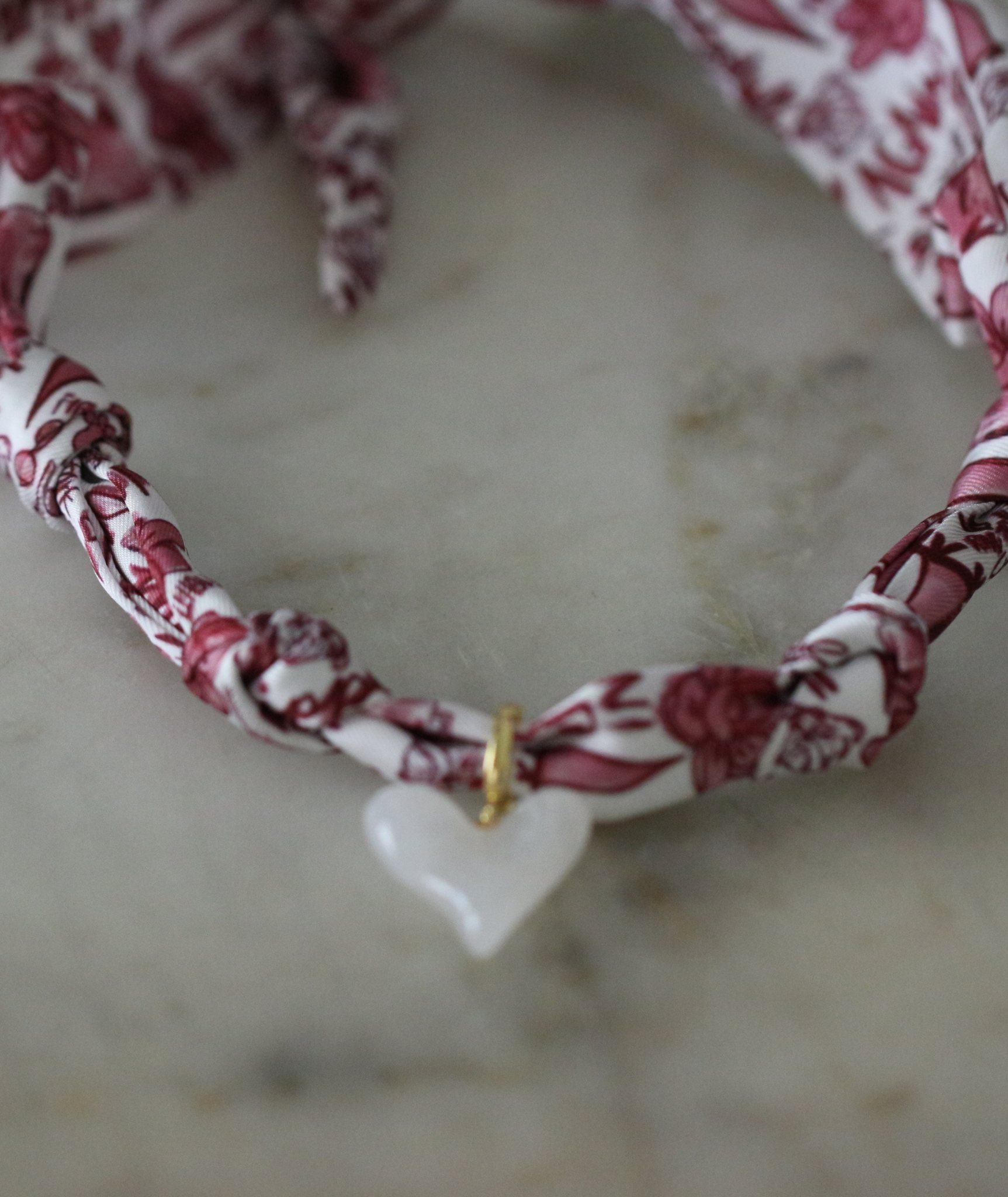 Wrap yourself in team spirit with this scarf-inspired necklace, designed for game days and beyond. The silky maroon-and-white patterned fabric knots gracefully around your neck, finished with a polished heart charm for a touch of feminine flair. Perfect for tailgates, stadium stands, or adding a spirited accent to your everyday look, this necklace blends Southern charm with playful elegance.