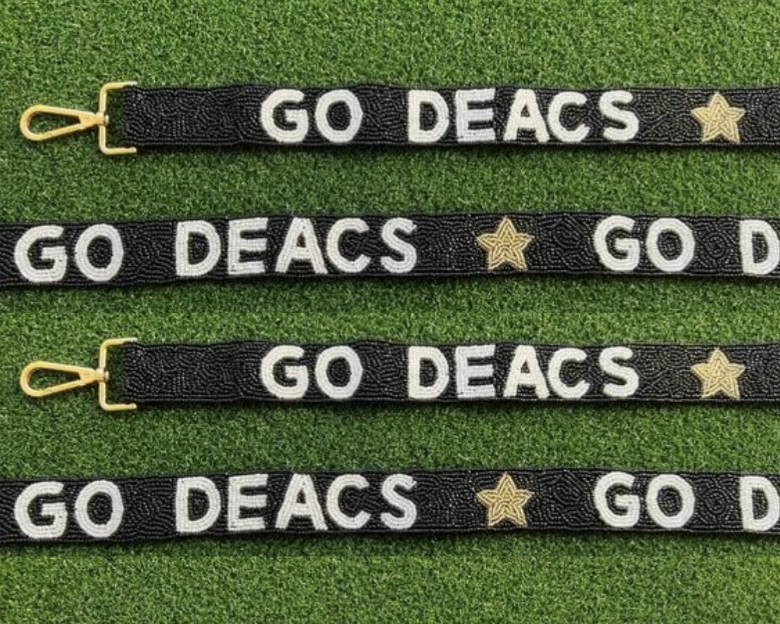 Introducing our handmade beaded purse strap, perfect for showing off your love for the Wake Forest and their iconic rallying cry, "Go Deacs" Perfect with a clear bag for game day.
